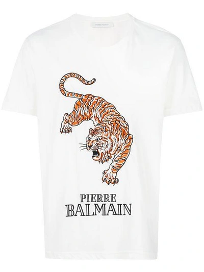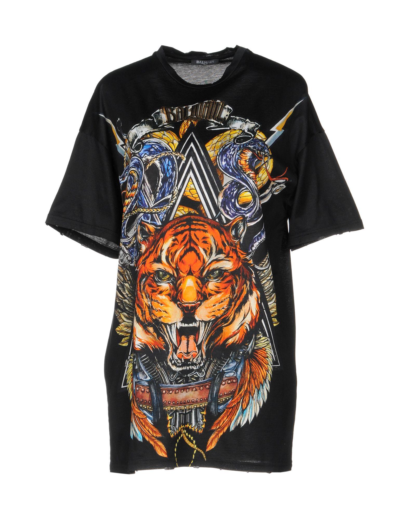 Balmain tiger shirt. The logos are bold and the graphics are even bolder in our collection of Balmain T-shirts. Shop exclusive and limited pieces. Choose from wolf prints and zodiac patterns too.